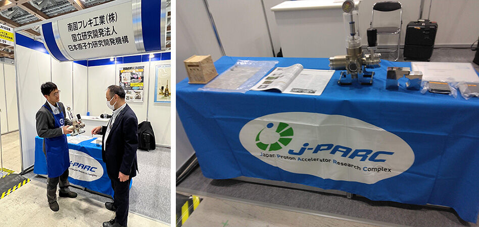 At this event, J-PARC showcased a vacuum sample transfer case and getter sheets-developed in collaboration with partner companies--that utilize getter coating technology derived from J-PARC's vacuum technology. This technology enables the maintenance of ultra-high vacuum conditions without conventional pumping by coating getter materials on the surfaces of vacuum components.