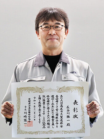 Dr. ASO serves as a Refrigeration Safety Supervisor, and Dr. HASEGAWA serves as an Assistant Refrigeration Safety Supervisor. They were recognized for their outstanding contributions as High-Pressure Gas Safety Supervisors, consistently complying with relevant regulations and fulfilling their responsibilities over many years to ensure safe and reliable operations.