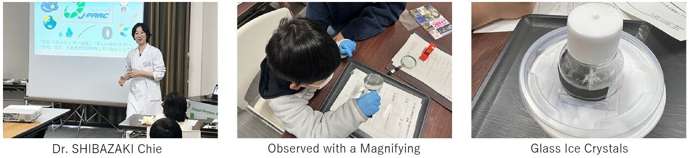 On the day of the event, participants observed dissected dried sardines and ice crystals carefully using magnifying glasses, under the slogan, "The first step in research is to observe closely with your own eyes."