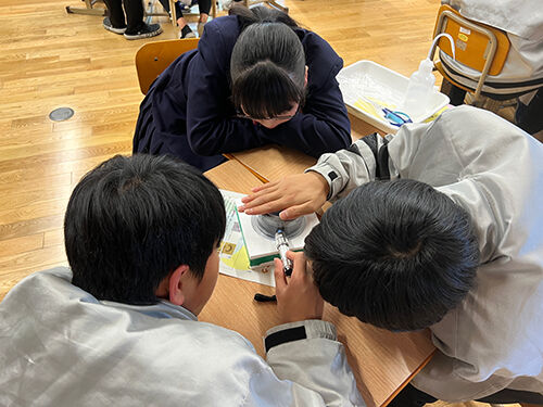 身近な「なぜ?」「どうして?」を出発点に、不思議をそのままにせず自ら考えることの大切さや面白さを伝える時間となりました。また、実験に驚き、目を輝かせながら取り組む生徒の姿が多く見られ、科学への関心が芽生えるきっかけとなりました。